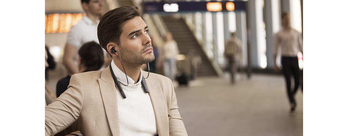 WH-1000XM3に搭載されている「高音質ノイズキャンセリングプロセッサーQN1」をネックバンドスタイルにも搭載。高性能なノイズキャンセリング処理を可能にしたことで、さまざまな環境においてもノイズを気にせず、高音質に浸ることができます。