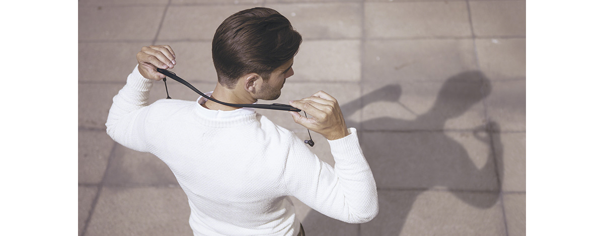 WI-1000XM2では、コンパクトに丸められるシリコン製のネックバンドを採用。前モデルからの軽量化を実現したことに加え、より首回りにフィットするようになり、装着性が向上しました。